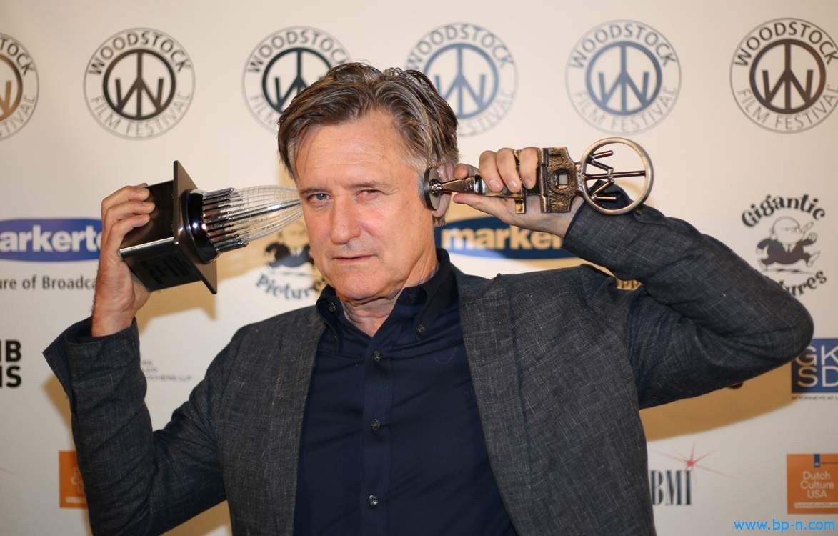Actor Bill Pullman, after dropping his Excellence in Acting award at the Woodstock Film Festival Maverick Awards on Saturday night, holds the two pieces to his head. [LAURA REVERCOMB/WOODSTOCK FILM FESTIVAL]