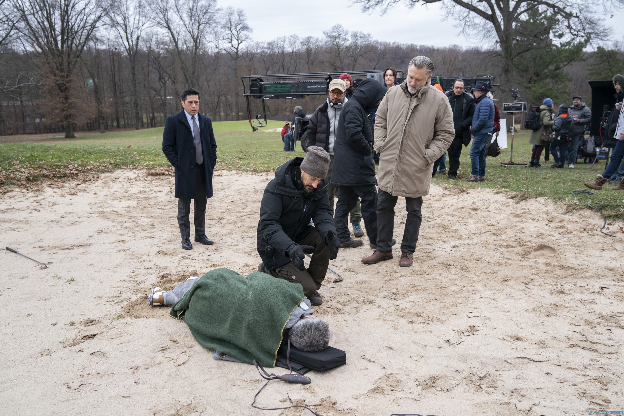 Derek Simonds (center), directing the Season 3 finale of “The Sinner”
